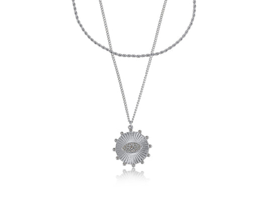 Big Metal London Evil Eye Charm Layered Necklace
