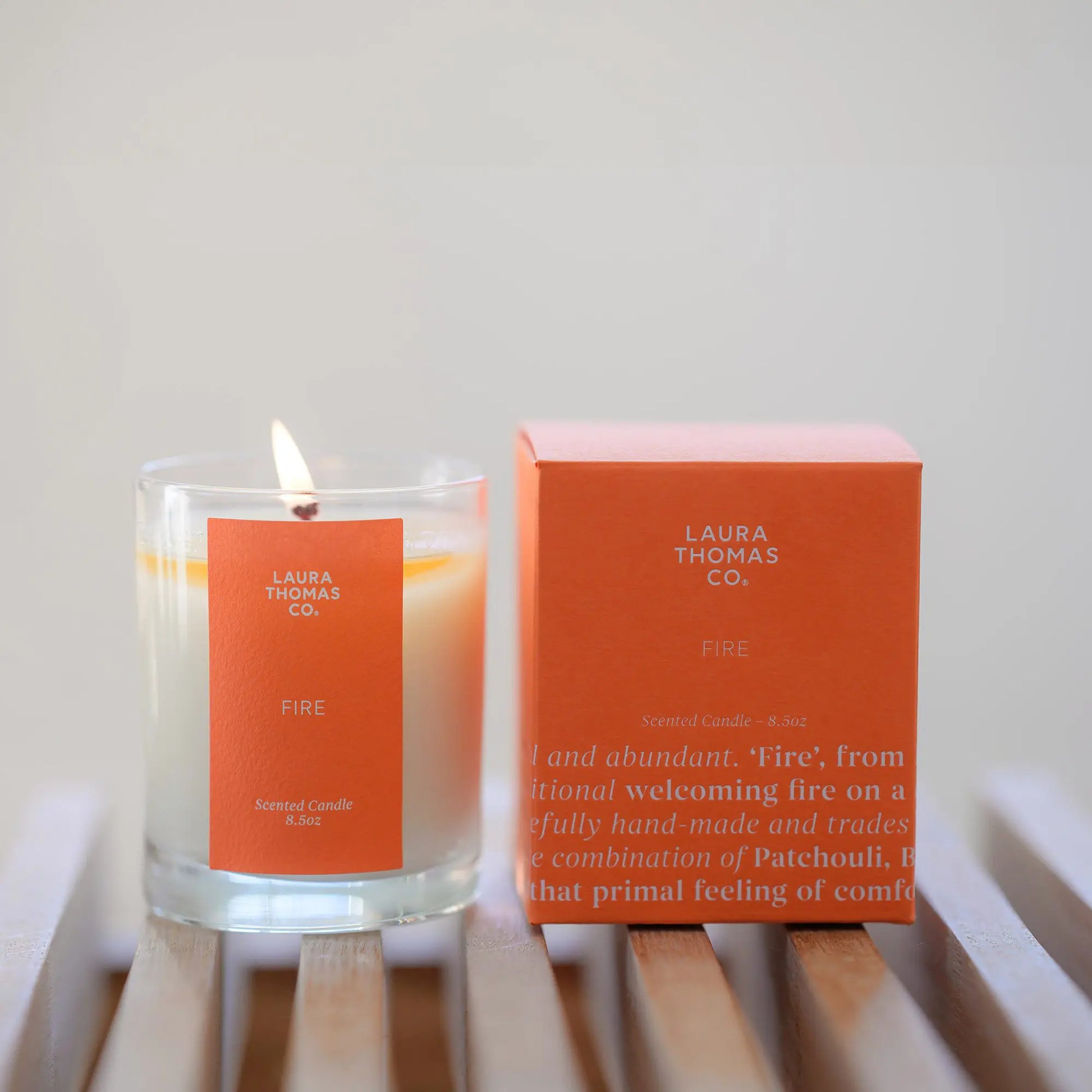 Fire → warming scents of Patchouli, Bergamot, Cedarwood, and Palmarosa capture the essence of a traditional welcoming fire.